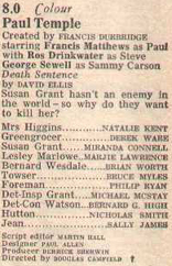 This is an unofficial and non-commercial website. The rights to Paul Temple are held by the BBC. The sole purpose of this page is to promote the abovementioned series - no copyright infringement is intended. However, should the copyright holders be unhappy with my use of screenshots the material in question will be removed immediately.