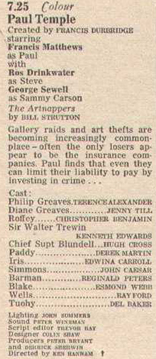 This is an unofficial and non-commercial website. The rights to Paul Temple are held by the BBC. The sole purpose of this page is to promote the abovementioned series - no copyright infringement is intended. However, should the copyright holders be unhappy with my use of screenshots the material in question will be removed immediately.